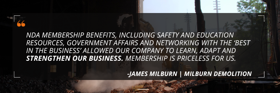 The National Demolition Association (NDA) knows demolition is more than just wrecking balls and explosions. For over 50 years, we’ve worked alongside our members and industry leaders to show the world that we are highly skilled professionals.